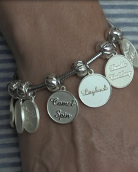 These charms can be worn or displayed in so many ways. The most obvious is on a charm bracelet. Skaters can customize their charm bracelet so that it “fits their personality” AND shows their accomplishments.