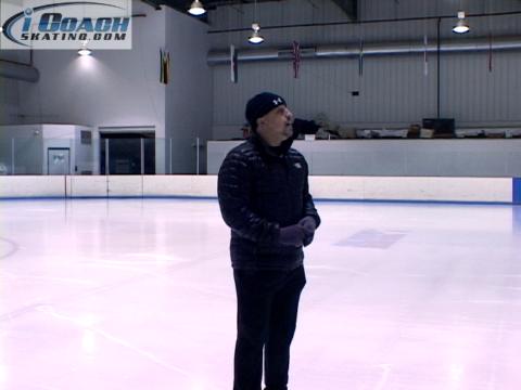 In this video Chris shares two exercises.  This first is a a stroking exercise intended to warm up the skater and build flow while incorporating arms and head movements.  Chris calls this exercise “one arm two arm” because he wants the skater to focus not only on flow across the ice but on artistic arm movements as well.  He breaks the exercise down in detail, including the backward inside edge to forward outside edge step/push.